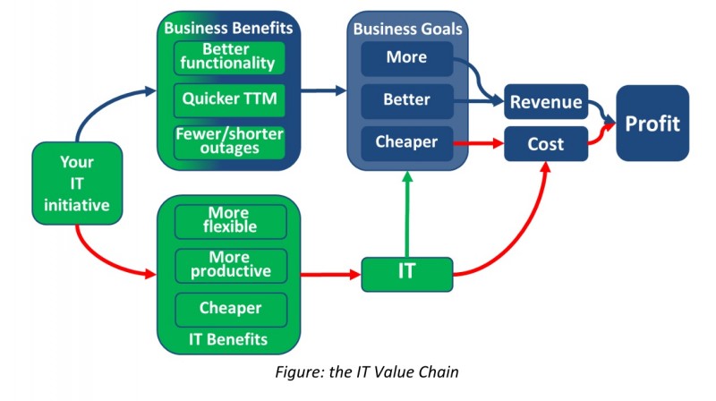 The IT Value Chain is a way of articulating an IT initiative’s outcomes in terms that make sense to business people